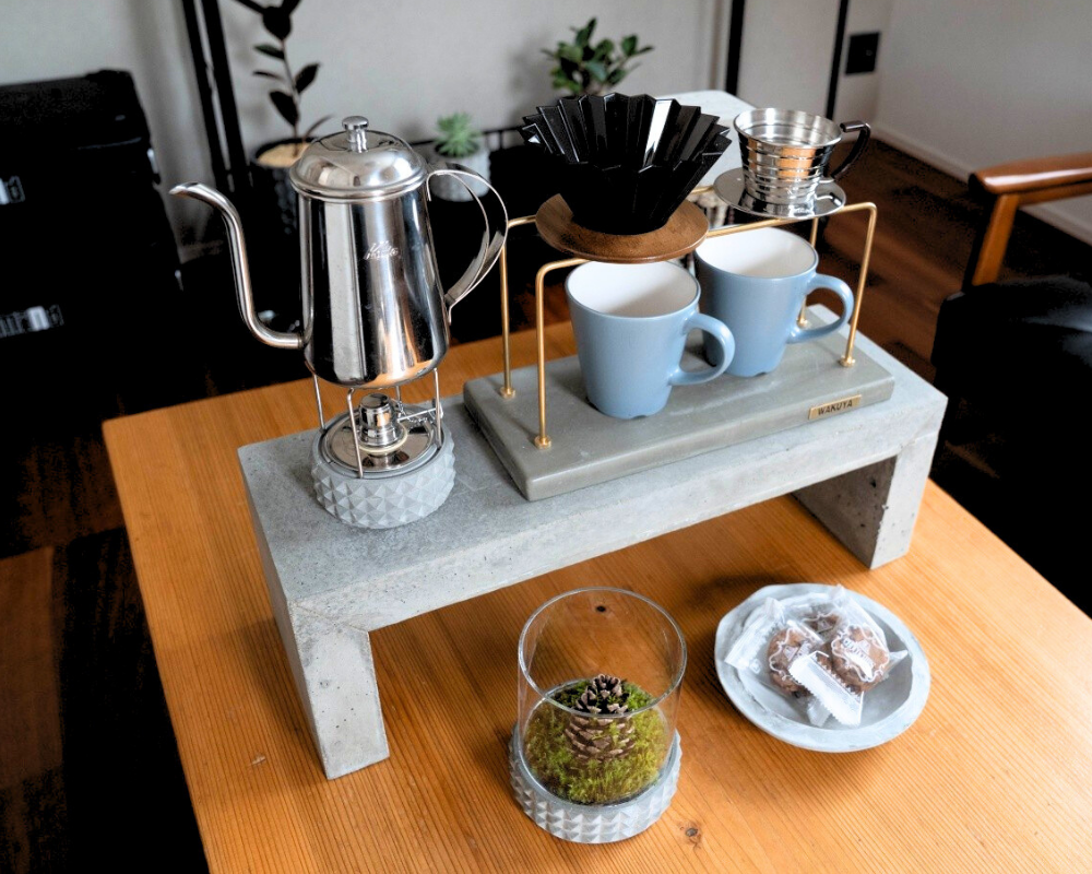 モルタルの持つ静謐な質感と、木や鉄などの異素材を掛け合わせ、構造美と素材感を大切にしたプロダクトを展開。
