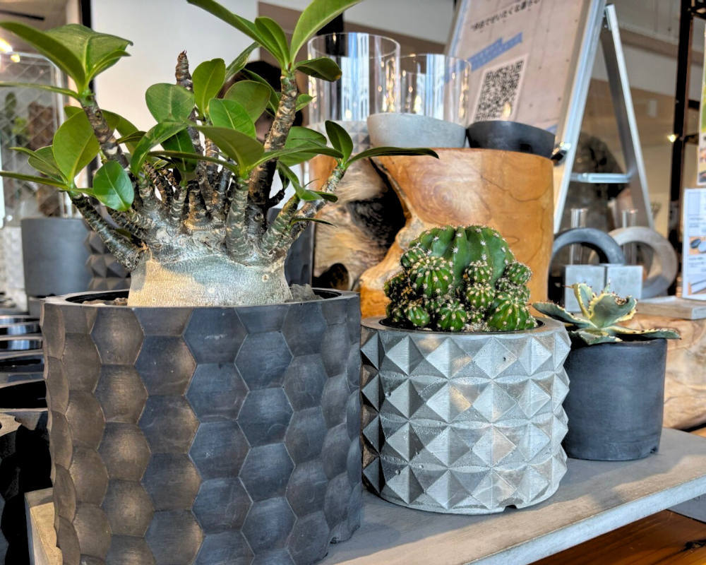 モルタルの持つ静謐な質感と、木や鉄などの異素材を掛け合わせ、構造美と素材感を大切にしたプロダクトを展開。